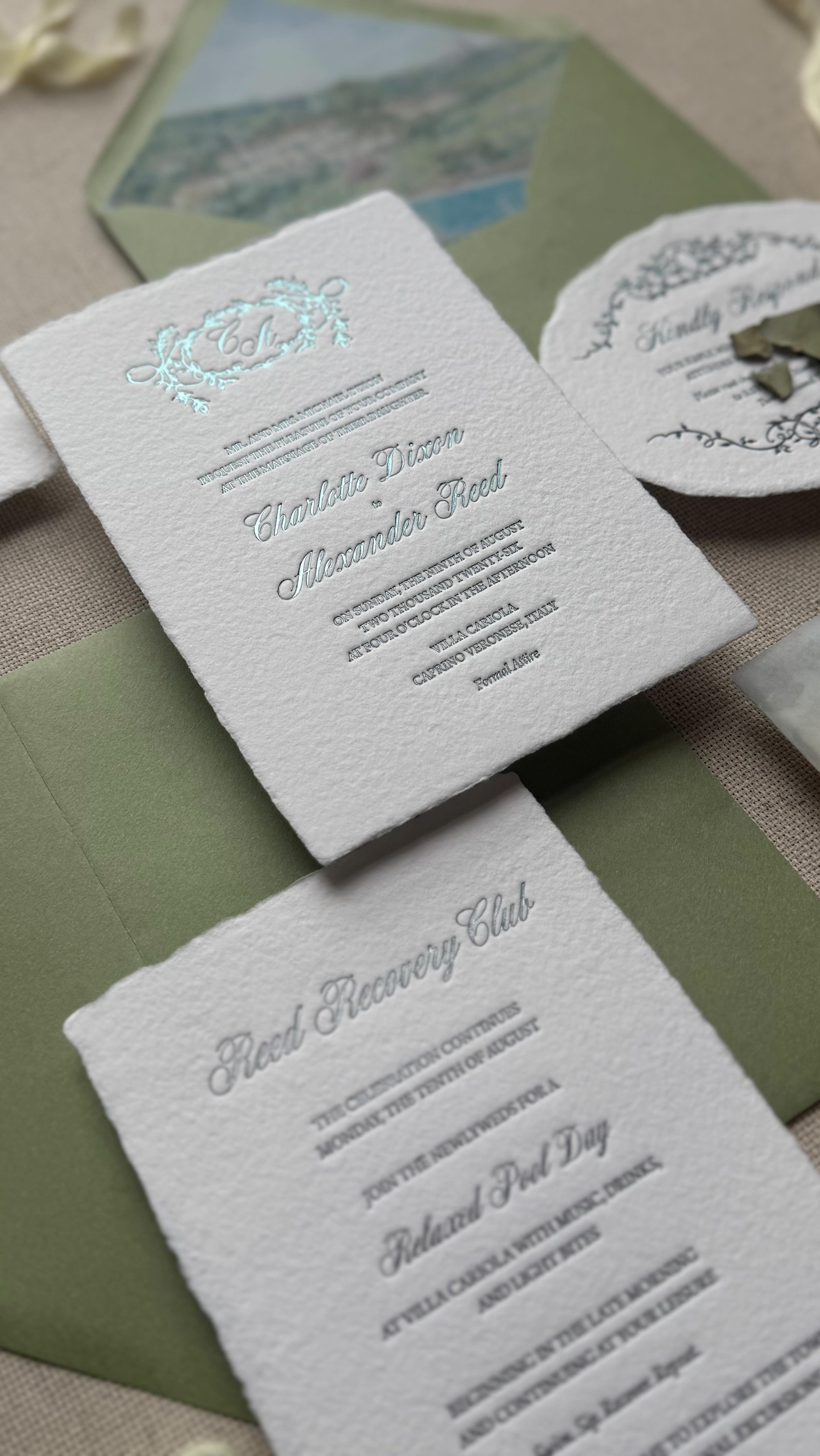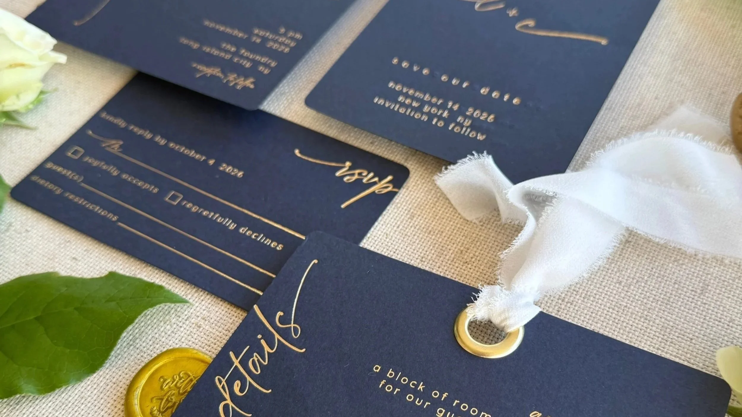 Each suite is carefully foil-pressed and assembled to be kept — tactile, textured, and radiating your story. Materials from the earth form elegant textures that speak for themselves, entangled through a modern approach to vintage printing.