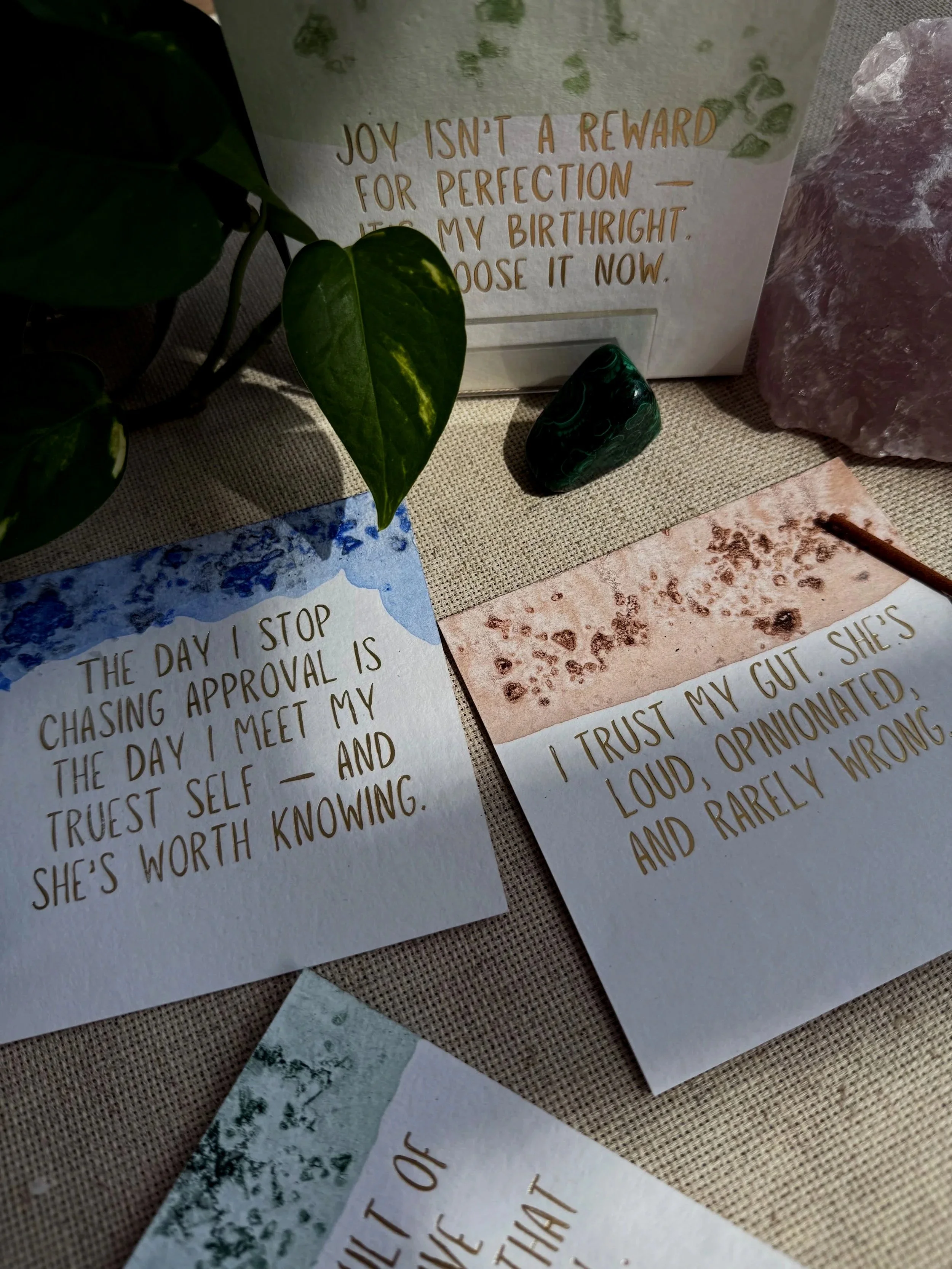 Each card was designed to be both beautiful and practical. Something that looks good on your shelf but actually gets used. Something that can hold you during quiet mornings and emotional pivots.